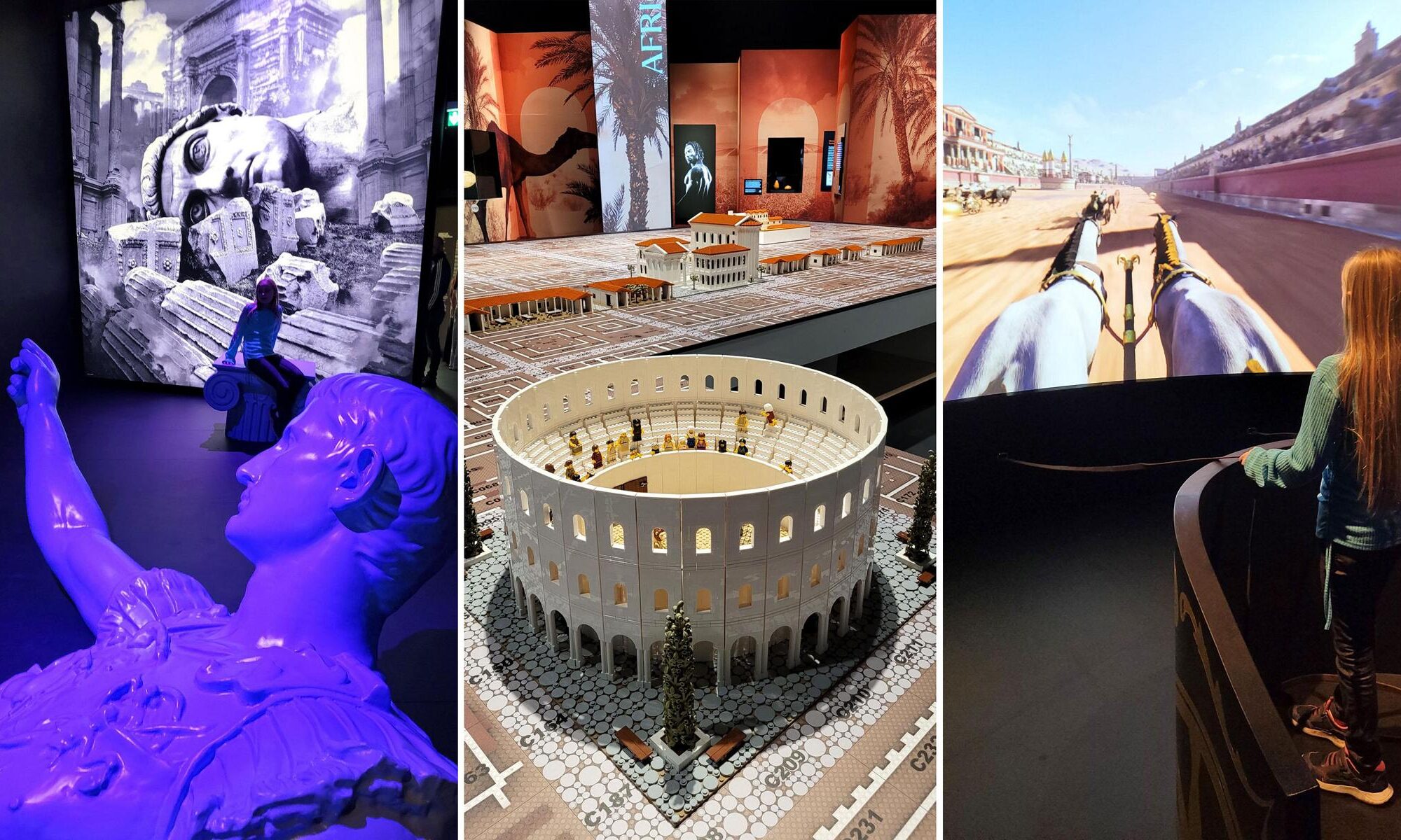 Gleich nach der Besichtigung des beeindruckenden Kolosseums in Rom durften meine Kinder die Gladiatorenkämpfer in der „Magnet-Arena“ fachmännisch mit Waffen und Rüstung ausstatten. Anschließend wurden selbst Helm und Schild angelegt – zum Glück nur für ein Foto 😉 . So spielerisch und lehrreich ging es weiter durch die aktuelle Sonderausstellung „Gladiatoren – Helden des Kolosseums“, vorbei an mannshohen Kämpfern und historischen Fundstücken. Nach ca. 1 Stunde sind wird dann in die große Dauerausstellung der Archäologischen Staatssammlung gewechselt. Meine Kinder ausgerüstet mit Tablet und Kopfhörer, mein Mann ganz klassisch und ich mit Schatzkarte in der Hand.