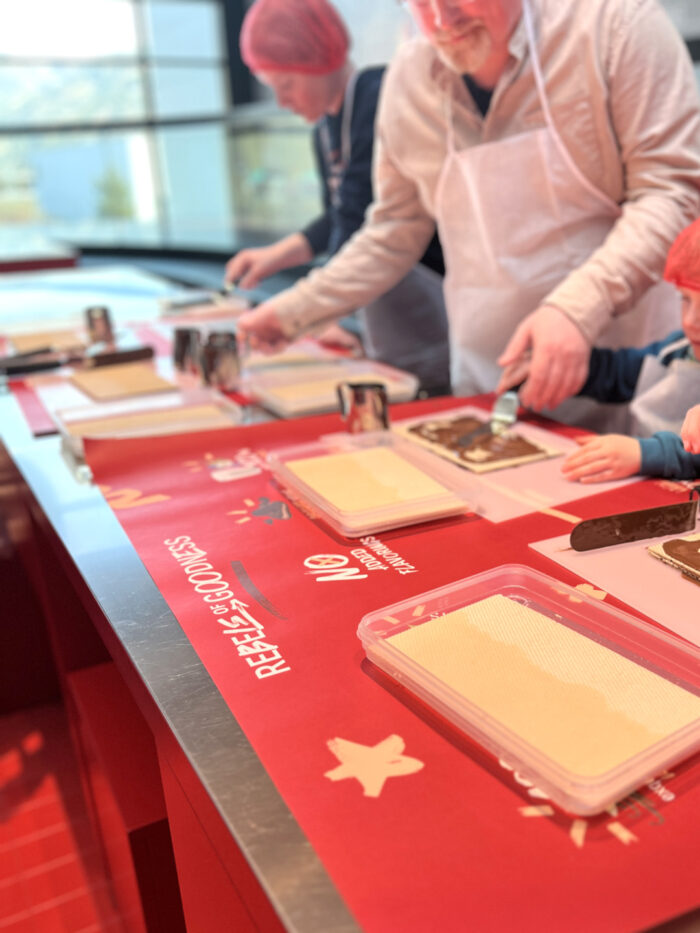 Hier durften wir hautnah erleben, wie die Waffeln gebacken werden und unsere eigene Loacker-Waffel zusammensetzen. Mit roten Haarnetzen und Feuereifer ging es ans Werk. Schoko- oder Nusssoße oder beides? Das Verzieren hat den Kids natürlich besonders viel Spaß gemacht!