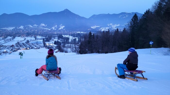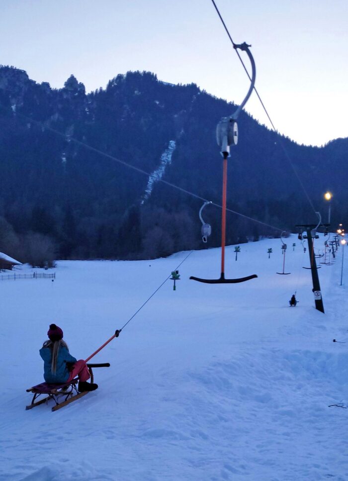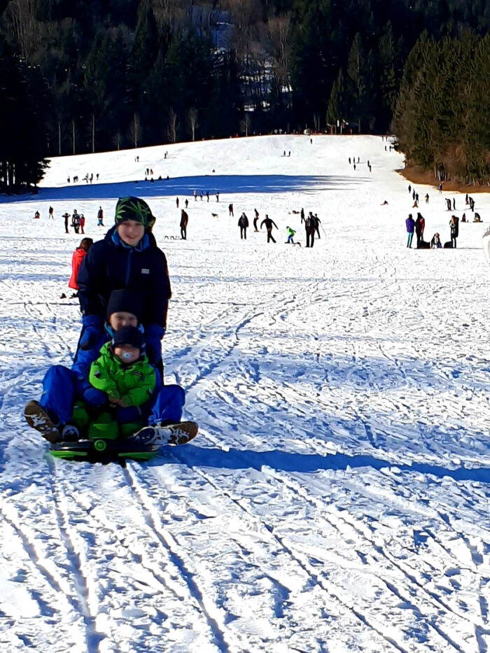 Wer lieber im Hellen rodeln möchte: direkt neben dem Draxlhang gibt es einen großen Rodelhang. Ihr könnt zu Fuß aufsteigen bis zum Milchhäusl und von dort herunterfahren. Ein riesen Spaß für die Kids und besonders praktisch, wenn größere Geschwister Ski-Kurs haben und die jüngeren bespaß werden möchten.