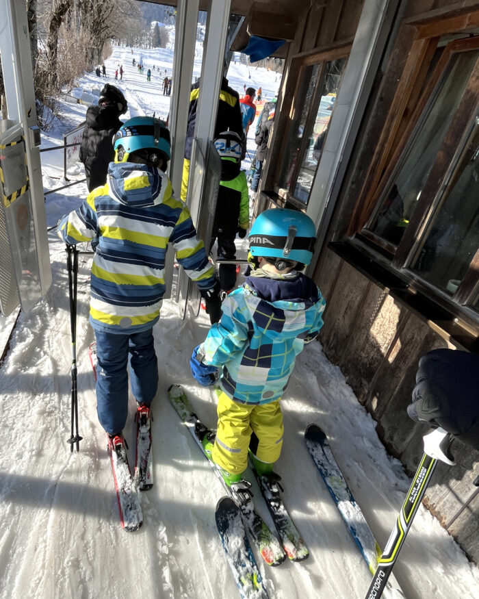 Besonders magisch war die Stimmung morgens kurz nach Sonnenaufgang auf der rechten Seite des Jaudenhangs. Dieser Lift geht etwas höher rauf. Unsere größeren Kids waren lieber dort unterwegs, vor allem wegen der kürzeren Anstehzeiten. Für unsere Jüngsten war dieser Schlepplift noch zu lang und der Boden (wahrscheinlich wetterbedingt) am Schlepper etwas uneben.