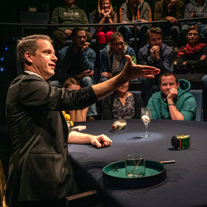 Die Philharmonie im Fat Cat in München ist etwas ganz Besonderes. Hier sitzt die ganze Familie direkt vor dem Magier und lässt sich aus nächster Nähe verzaubern. Glaubt aber nicht, dass ihr deswegen leichter versteht, wie zum Geier Herr Krist das anstellt 😉